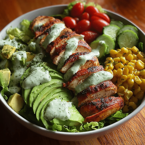 A high-protein, nutrient-packed meal with grilled chicken, avocado, and crisp veggies. Quick to prepare and naturally gluten-free.