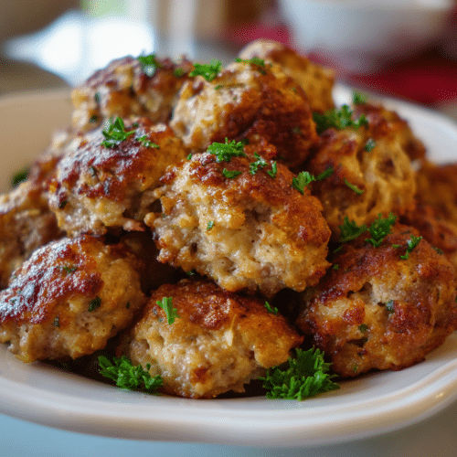 Savory, cheesy, and easy-to-make sausage balls that are perfect for parties or weekday snacks.